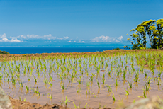 干潮時に三四郎島まで道ができるトンボロ現象。