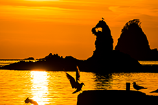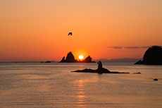 西伊豆は夕日が大変綺麗に見える場所で、堂ヶ島のある西伊豆町では「夕陽日本一宣言」を行いました。